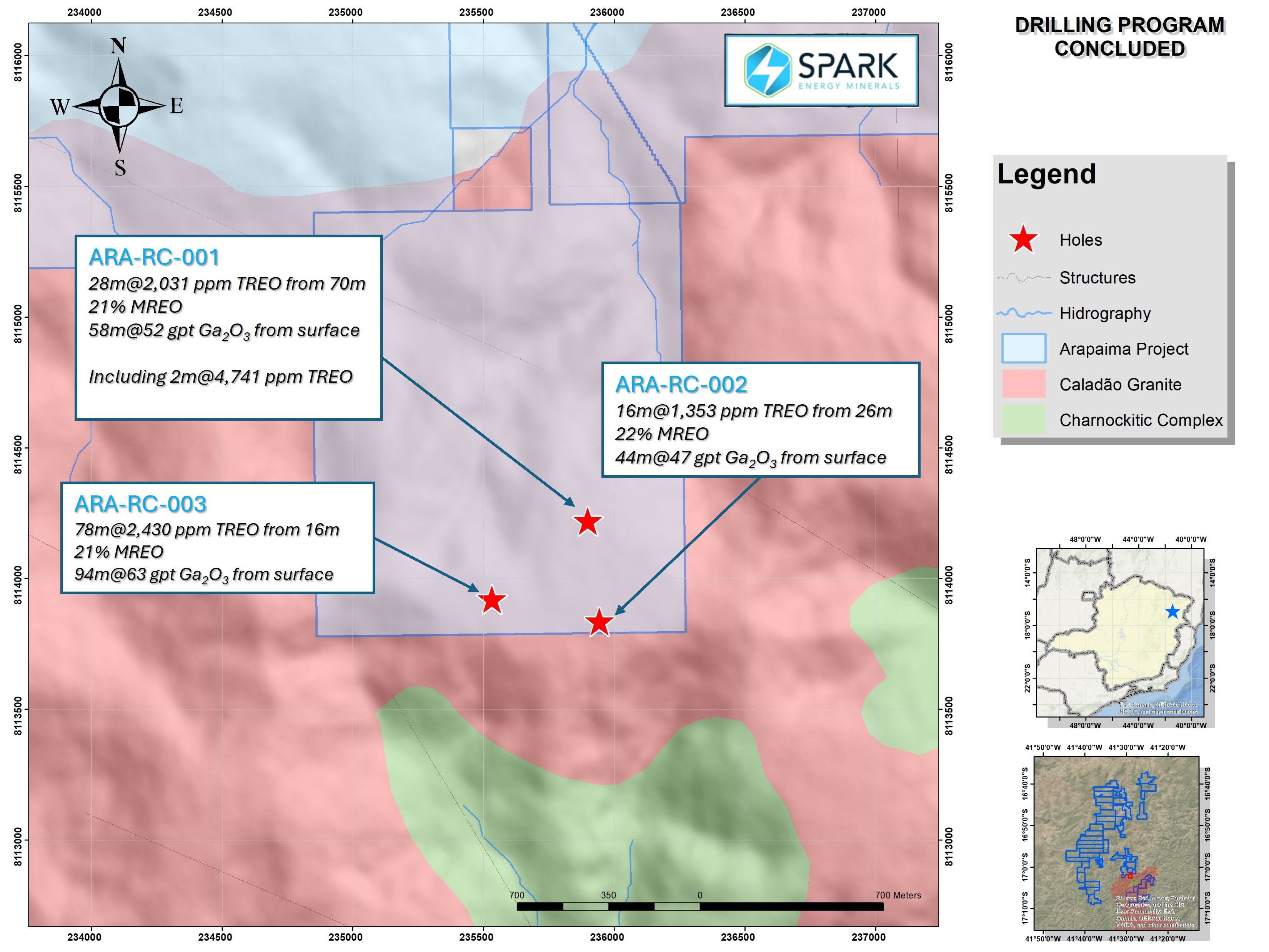 “These initial drill results confirm the presence of thick, near-surface rare earth and gallium mineralization at Arapaima and validate our exploration model,” said Dr. Fernando Tallarico, Chief Executive Officer of Spark Energy Minerals. “As maiden, first-pass discovery holes, the results demonstrate the presence of a laterally extensive mineralized system and support continued drilling to evaluate the lateral extension and scale of this mineralized system.”