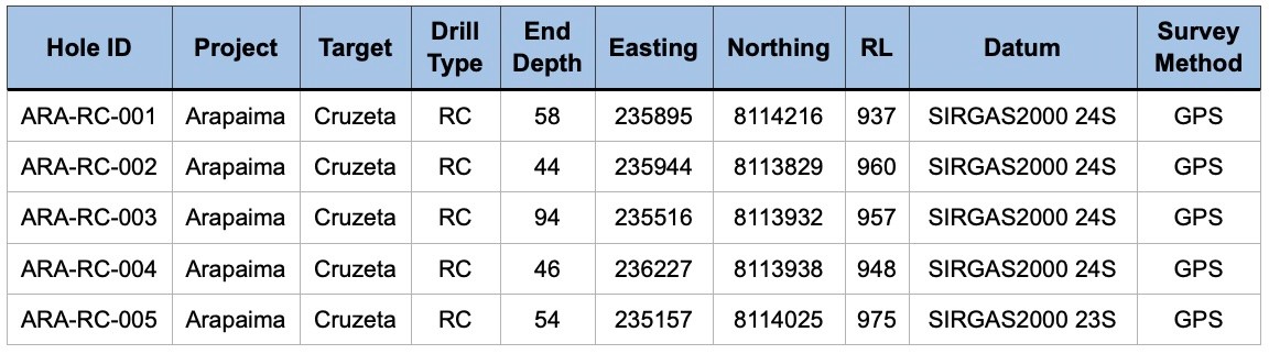These results are based on final assays from the first three drill holes completed as part of Spark’s maiden five-hole Reverse Circulation (“RC”) drill program at the Arapaima Project. Assays from the remaining two drill holes are pending and will be reported once received.